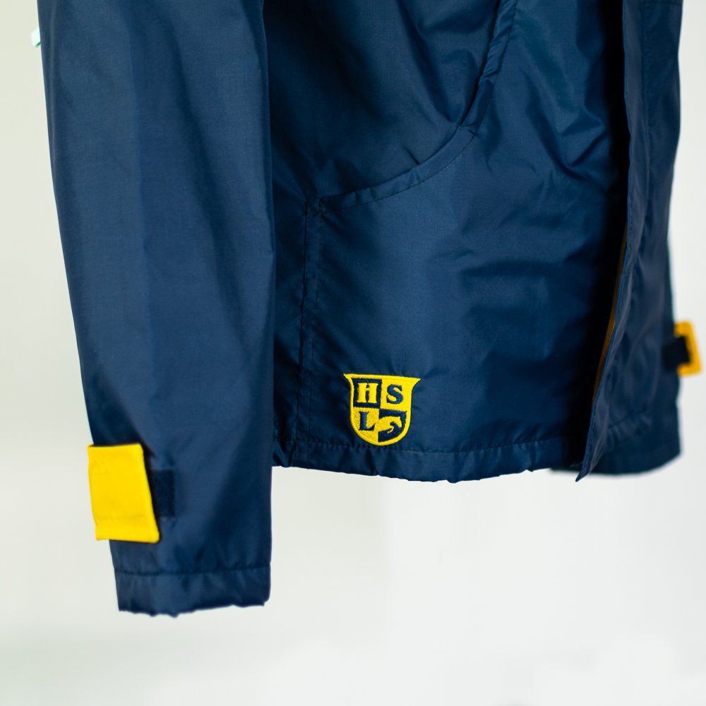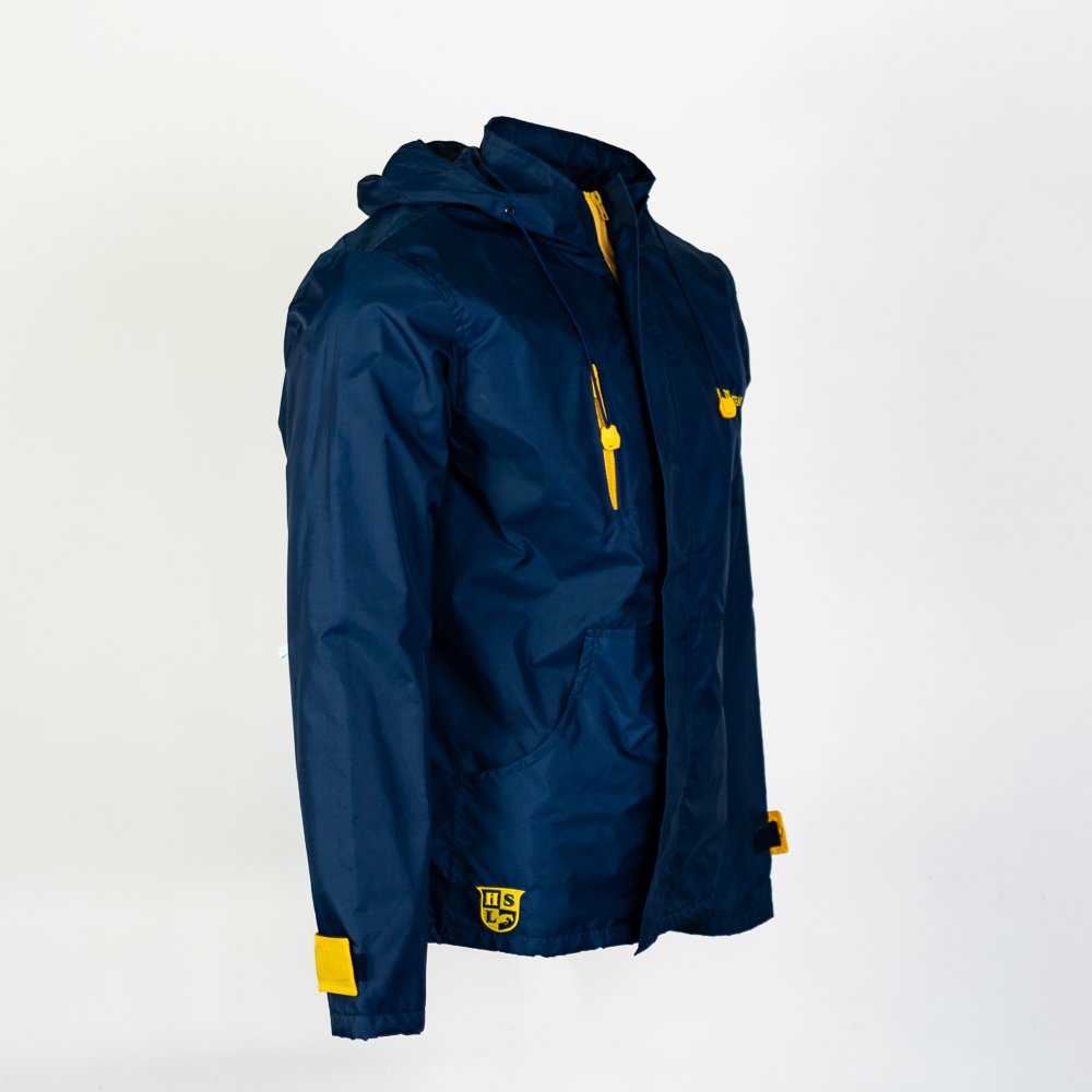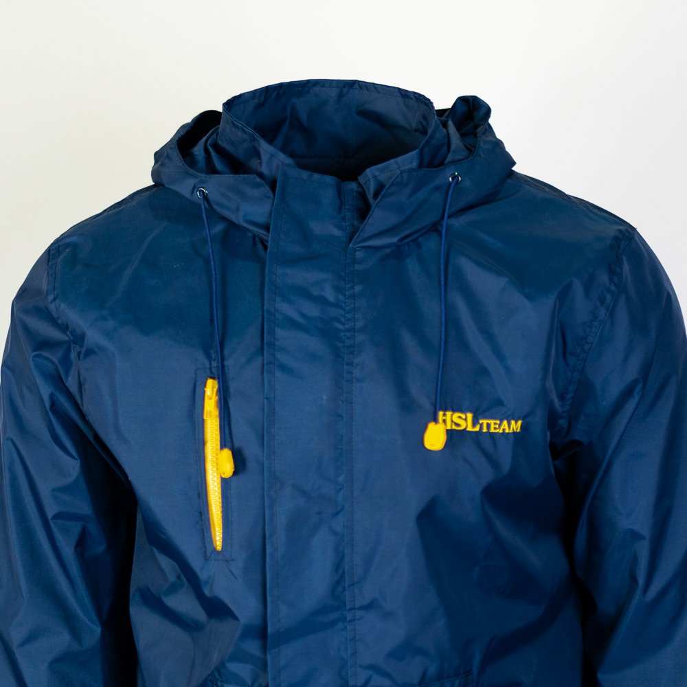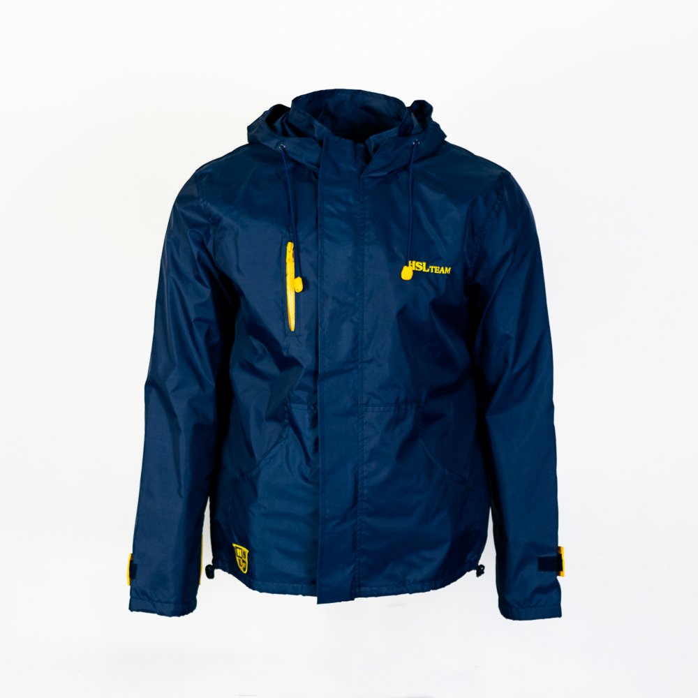 Jaqueta corta vento desenvolvido para a Azimut Yachts, marca italiana de fabricação de iates de luxo, com sede em Viareggio, na Itália. Para complementar a identidade visual da marca foi escolhido o nylon emborrachado impermeável na cor cinza chumbo. Esse modelo possui gola alta com capuz embutido, ficando optativo o uso do capuz ou não na peça. Outras variações desse modelo que desenvolvemos para a Azimut consta com um bolso embutido no peito direito, com fechamento em zíper. A logo foi aplicada com bordado digital no peito esquerdo e nas costas.