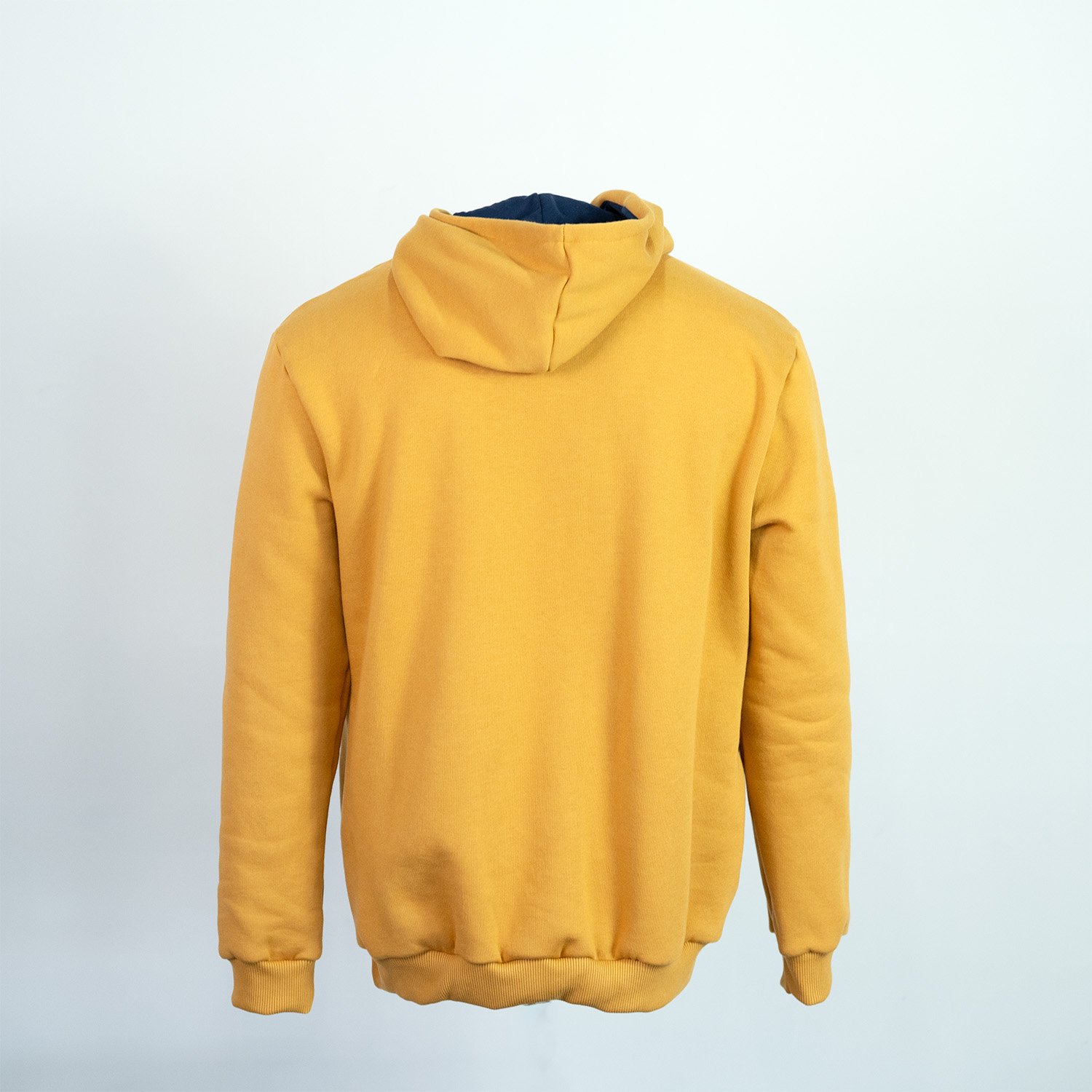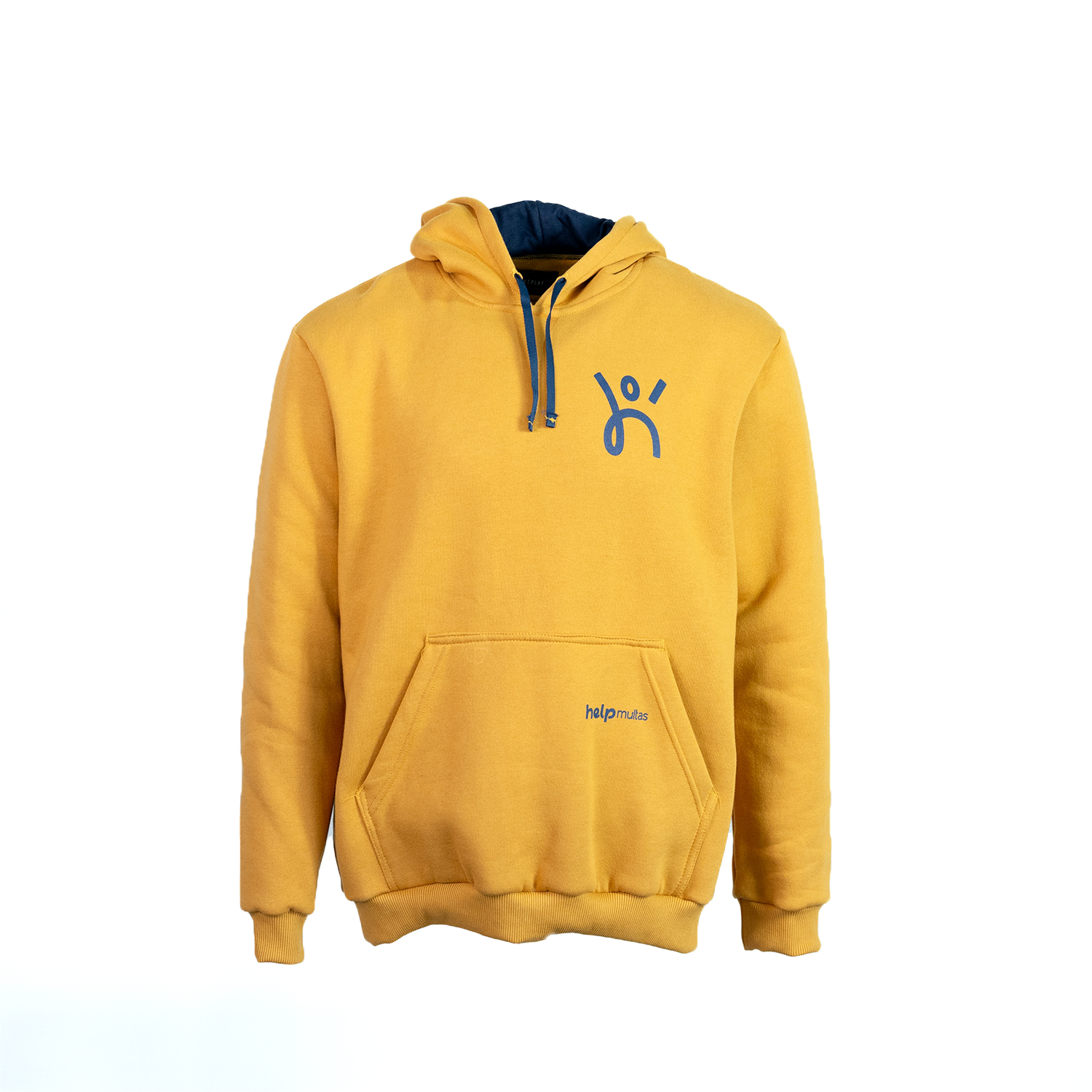 Moletom desenvolvido para Help Multas. Para complementar a identidade visual da equipe foi escolhido o moletom na cor amarela, com forro do capuz em malha de algodão marinho e cordão embutido para regulagem na cor marinho. Possui um bolso canguru frontal bem amplo, com abertura nos dois lados. O ícone foi aplicado com técnica de estamparia no peito esquerdo e a logo aplicada no bolso.
